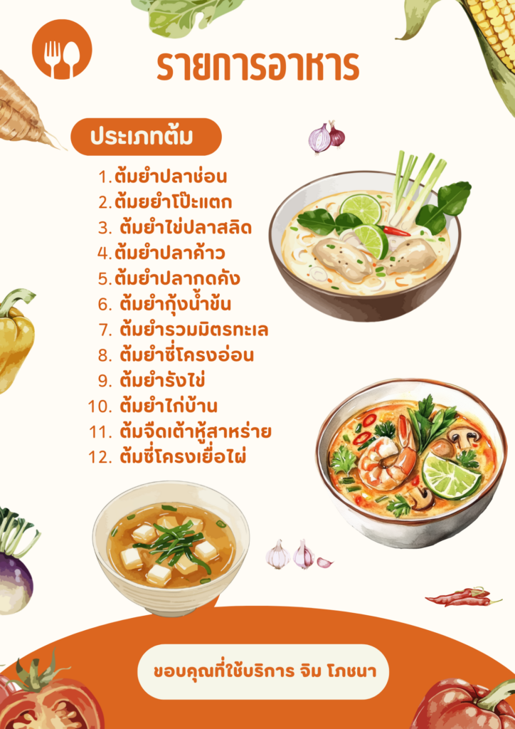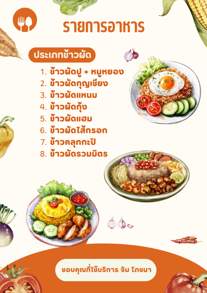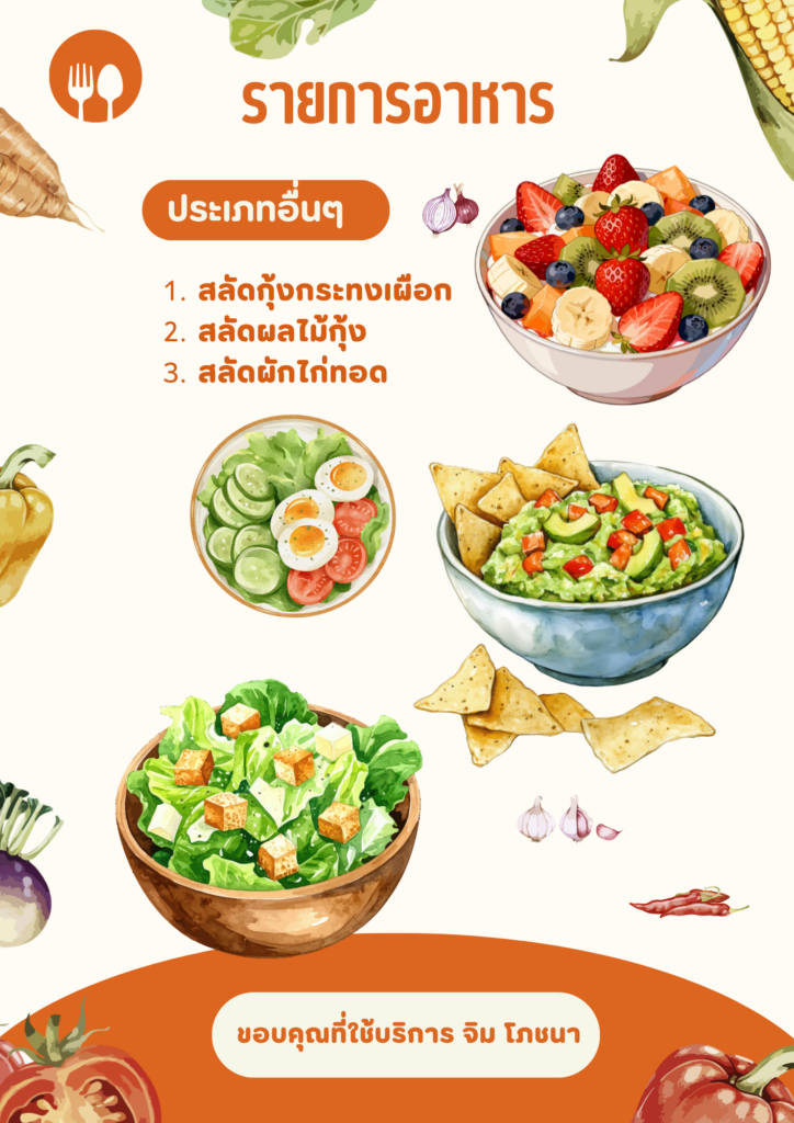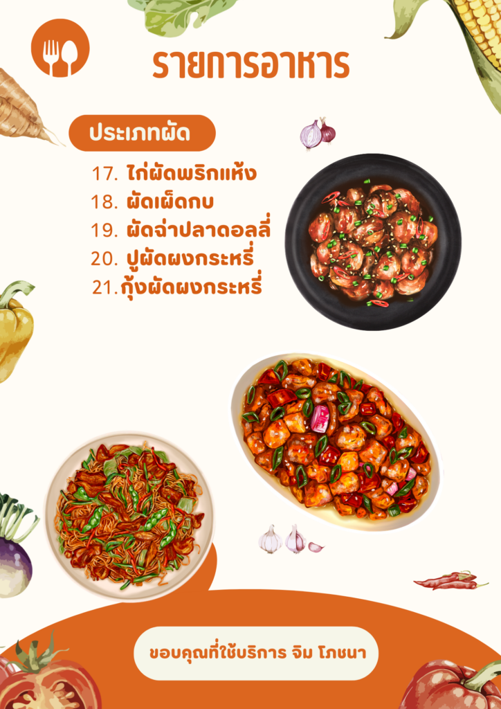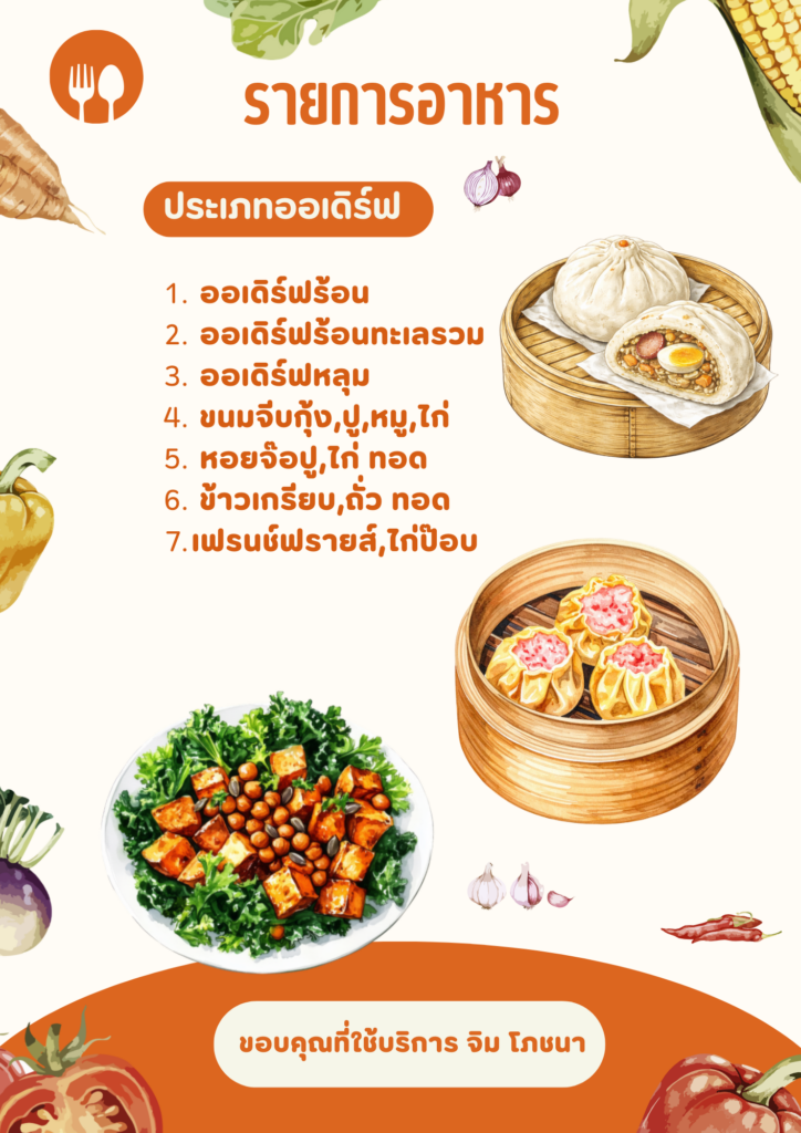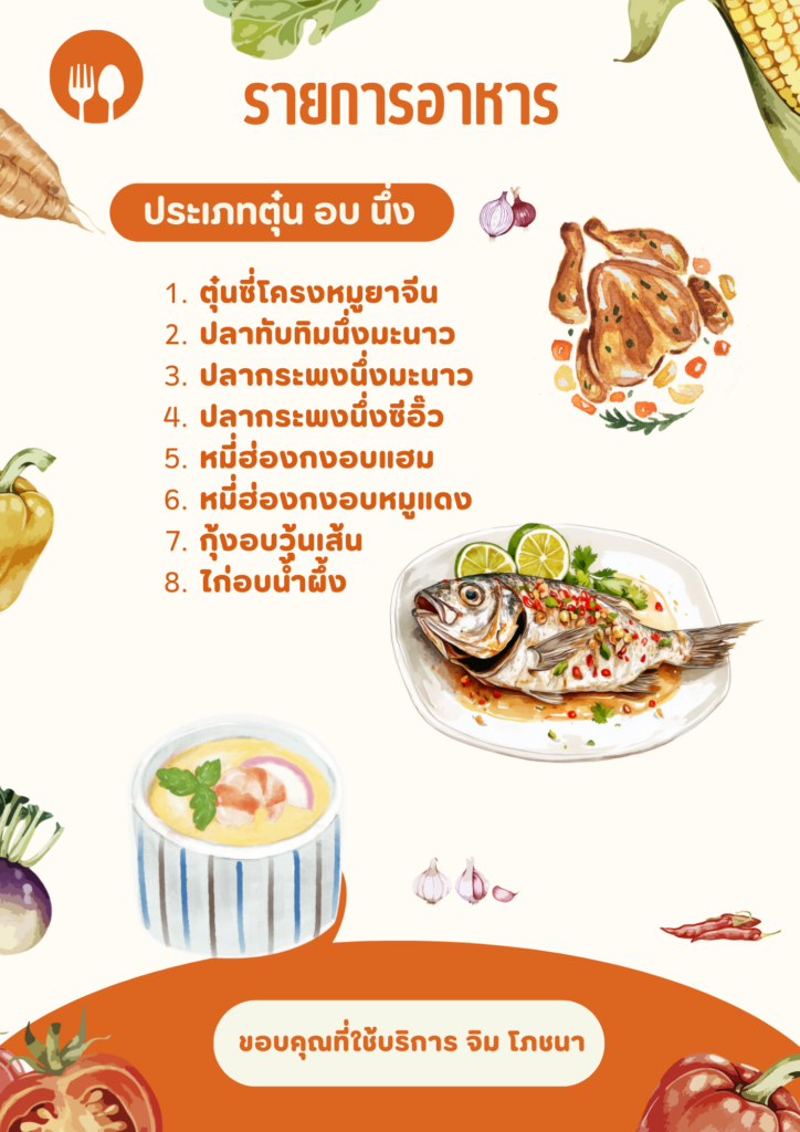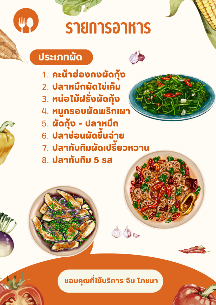 - อาหารทั้งหมดสามารถเลือกได้ตามที่ท่านต้องการให้ขึ้นโต๊ะ
